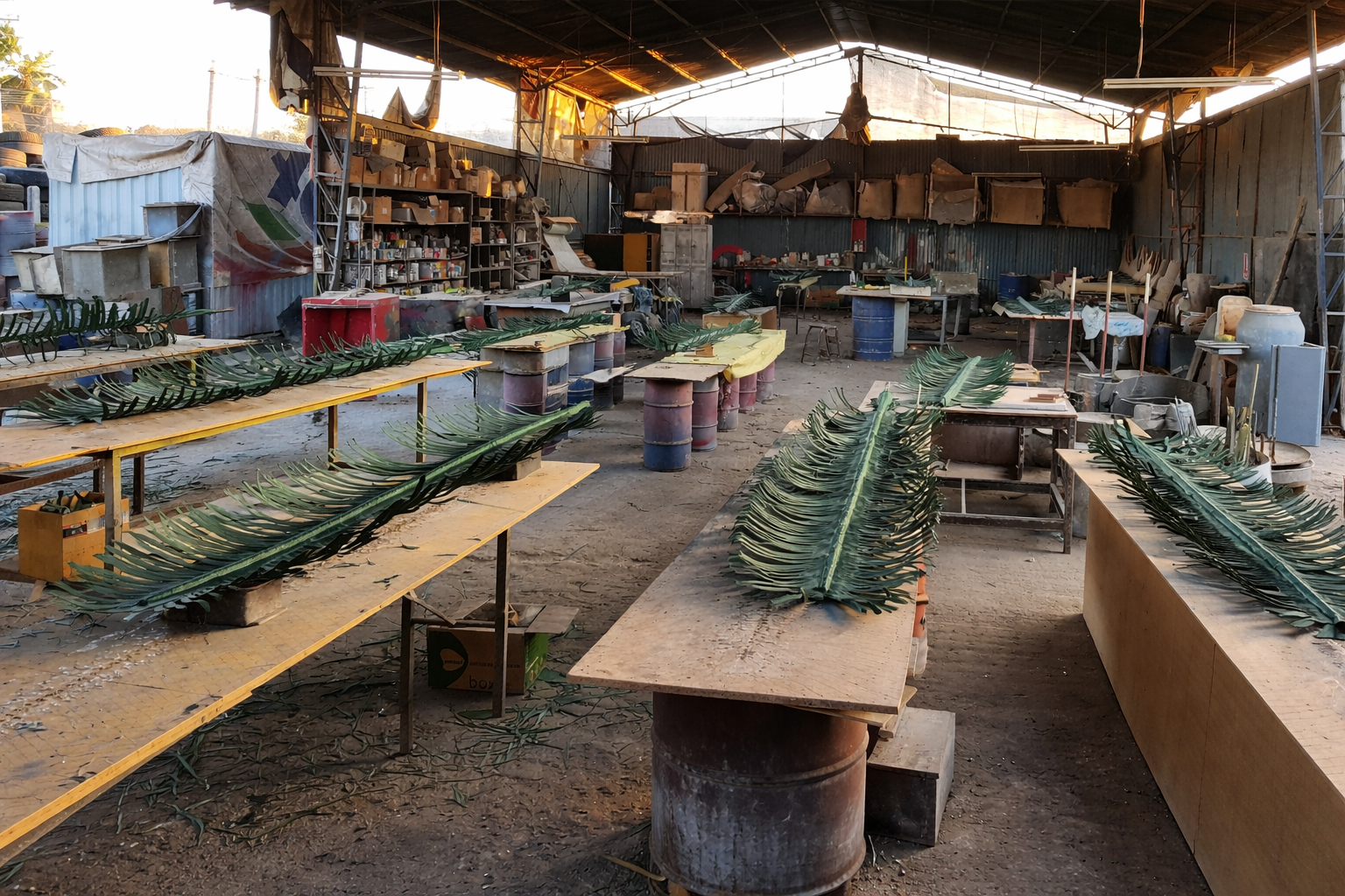 Fabricación de hojas de palmera en fibra de vidrio destinadas a sistemas de camuflaje para torres de telecomunicaciones.